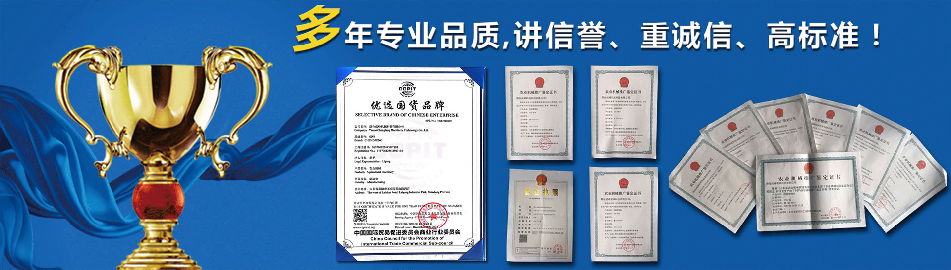 點擊進(jìn)入>煙臺成峰機(jī)械科技有限公司,成立于2010年4月,是農(nóng)林機(jī)械專業(yè)生產(chǎn)廠 家。十余年專注果園管理機(jī)械、大棚機(jī)械的研發(fā)、生產(chǎn)與銷售。產(chǎn)品暢 銷全國三十一個省市、自治區(qū),60%的產(chǎn)品出口歐、美、日、韓等多個國家。高新技術(shù)企業(yè),有經(jīng)驗豐富的產(chǎn)品研發(fā)團(tuán)隊,有十款產(chǎn)品通過國家農(nóng)機(jī)推廣鑒定,享有國家農(nóng)機(jī)補(bǔ)貼。公司現(xiàn)有激光切割機(jī)械、機(jī)器人焊 接、數(shù)控加工設(shè)備、表面處理設(shè)備數(shù)十臺,具備萬臺以上農(nóng)林機(jī)械的生 產(chǎn)能力。目前我們與山東農(nóng)業(yè)大學(xué),山東科技大學(xué)等多所高校達(dá)成產(chǎn)學(xué)研合作, 與山東農(nóng)機(jī)研究院、農(nóng)科院等多家科研單位達(dá)成產(chǎn)品研發(fā)合作,為傳統(tǒng)農(nóng)機(jī)的智能化賦能插上翅膀。我們遵循誠信、創(chuàng)新、合作、共贏的經(jīng)營理念,在可持續(xù)發(fā)展的道路上 穩(wěn)步前行。 查看詳情>